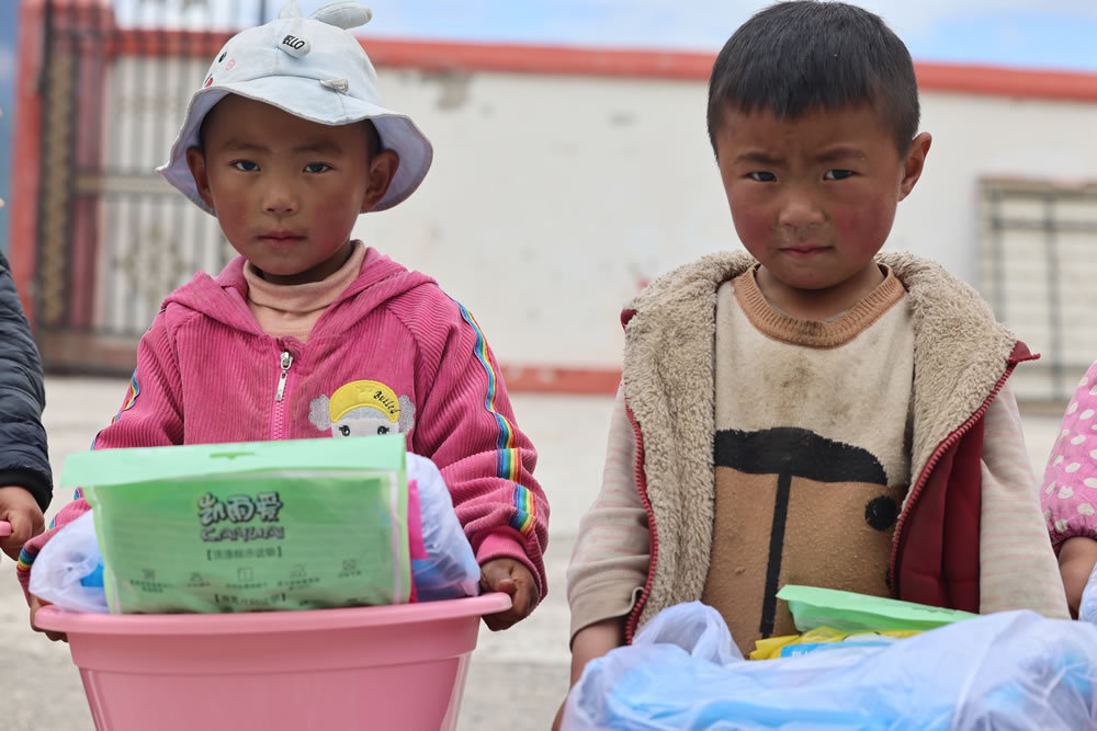 當(dāng)億嘉和的志愿者們到來的時(shí)候,相比其他走訪捐贈(zèng)活動(dòng),這里的孩子略顯的害羞,從他們的眼里,我們看出的是對(duì)未來的迷茫。他們的臉上和手上,都是常年在高原飽受日曬風(fēng)霜的痕跡,看的人十分心疼。
